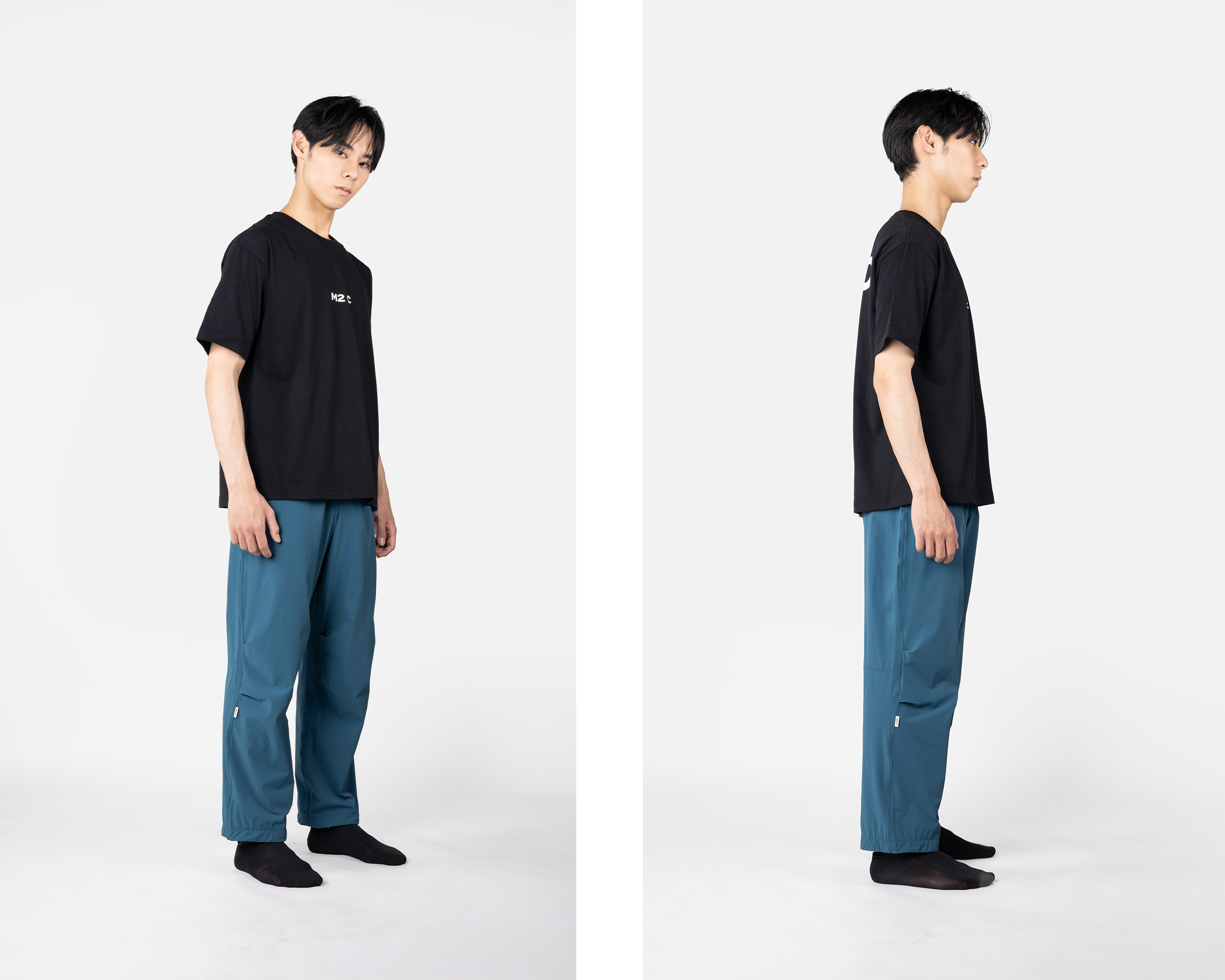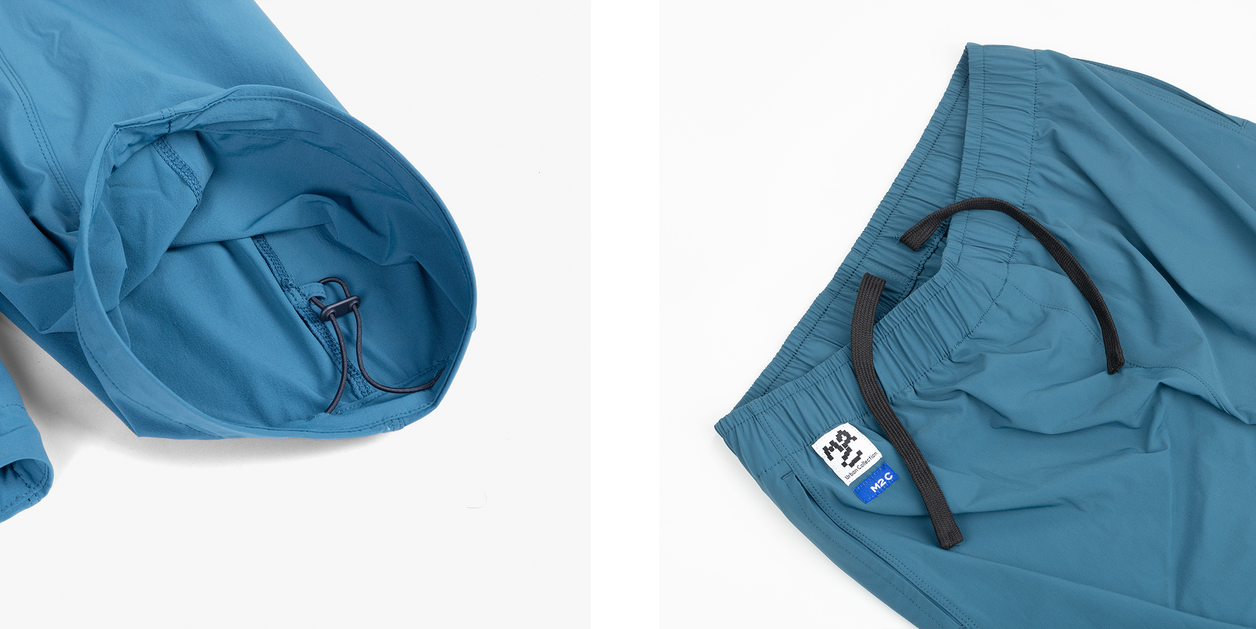 アジア人の体型に合わせて仕立てられたコクーンシルエットに、4方向に伸縮する台湾製の高性能耐摩耗性生地を使用。ウエストのドローストリングには金属ファスナーを使用しておらず、どんな体型にも適合します。