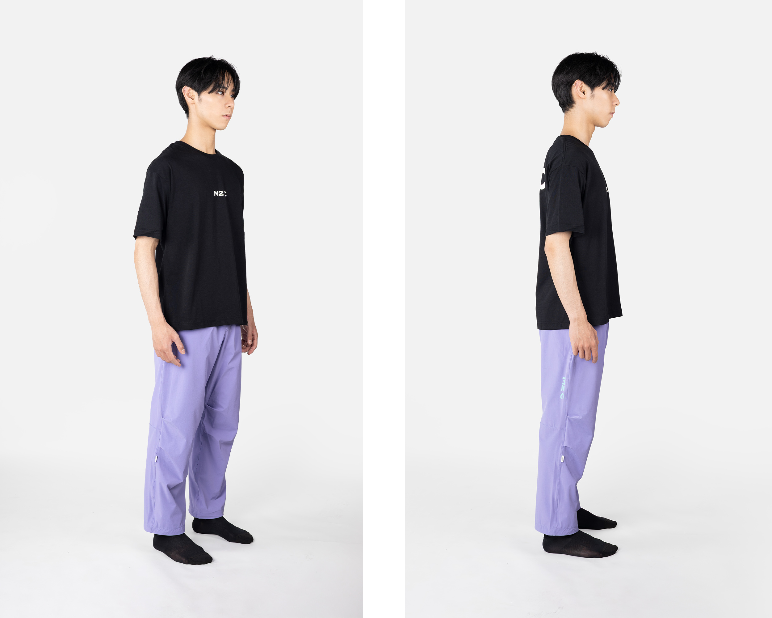 アジア人の体型に合わせて仕立てられたコクーンシルエットに、4方向に伸縮する台湾製の高性能耐摩耗性生地を使用。ウエストのドローストリングには金属ファスナーを使用しておらず、どんな体型にも適合します。