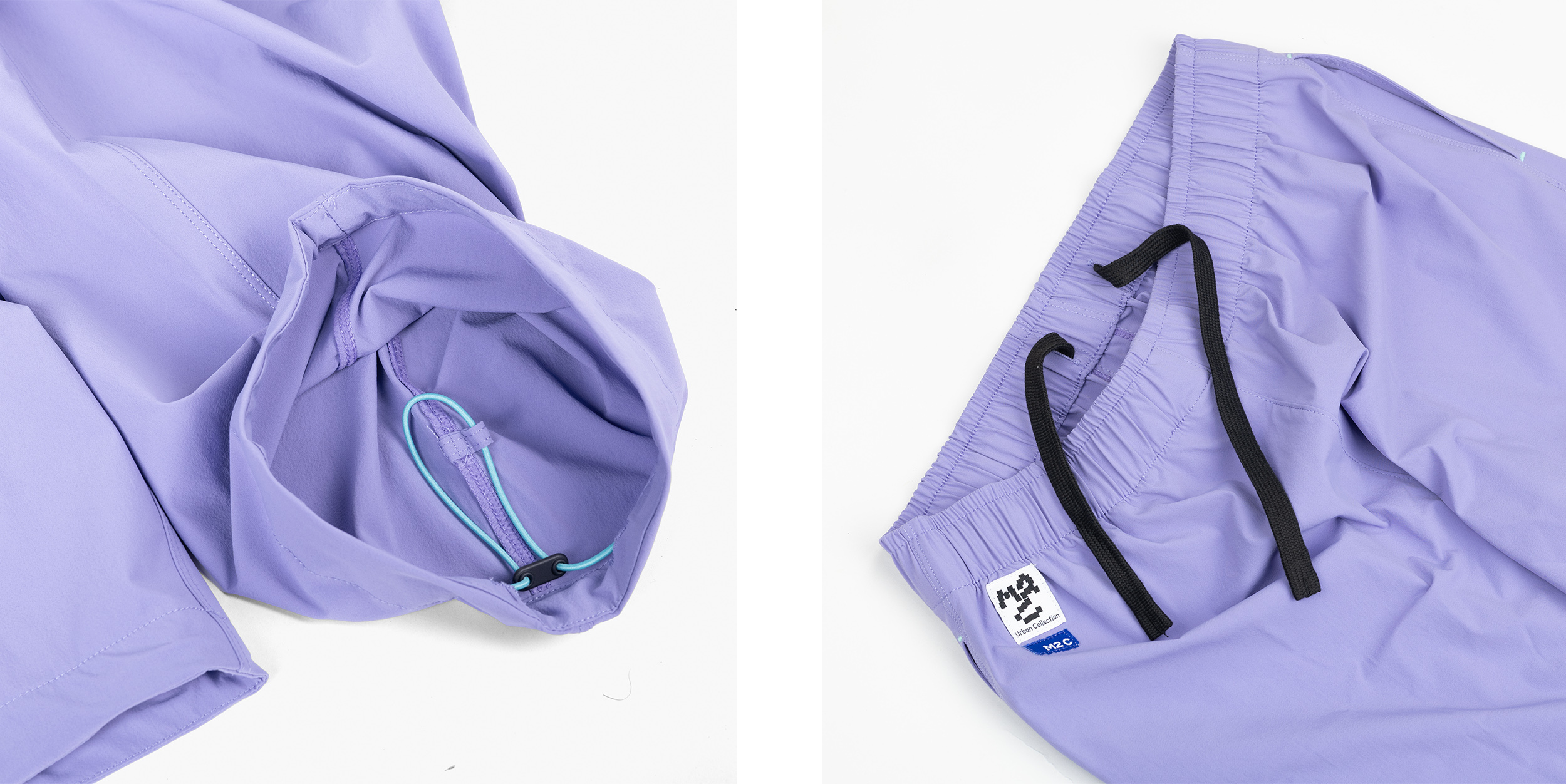 なお、足首のドローコードと軽量の豚鼻形コードストッパーによって、フルレングス・9分丈・7分丈といった調整が可能です。