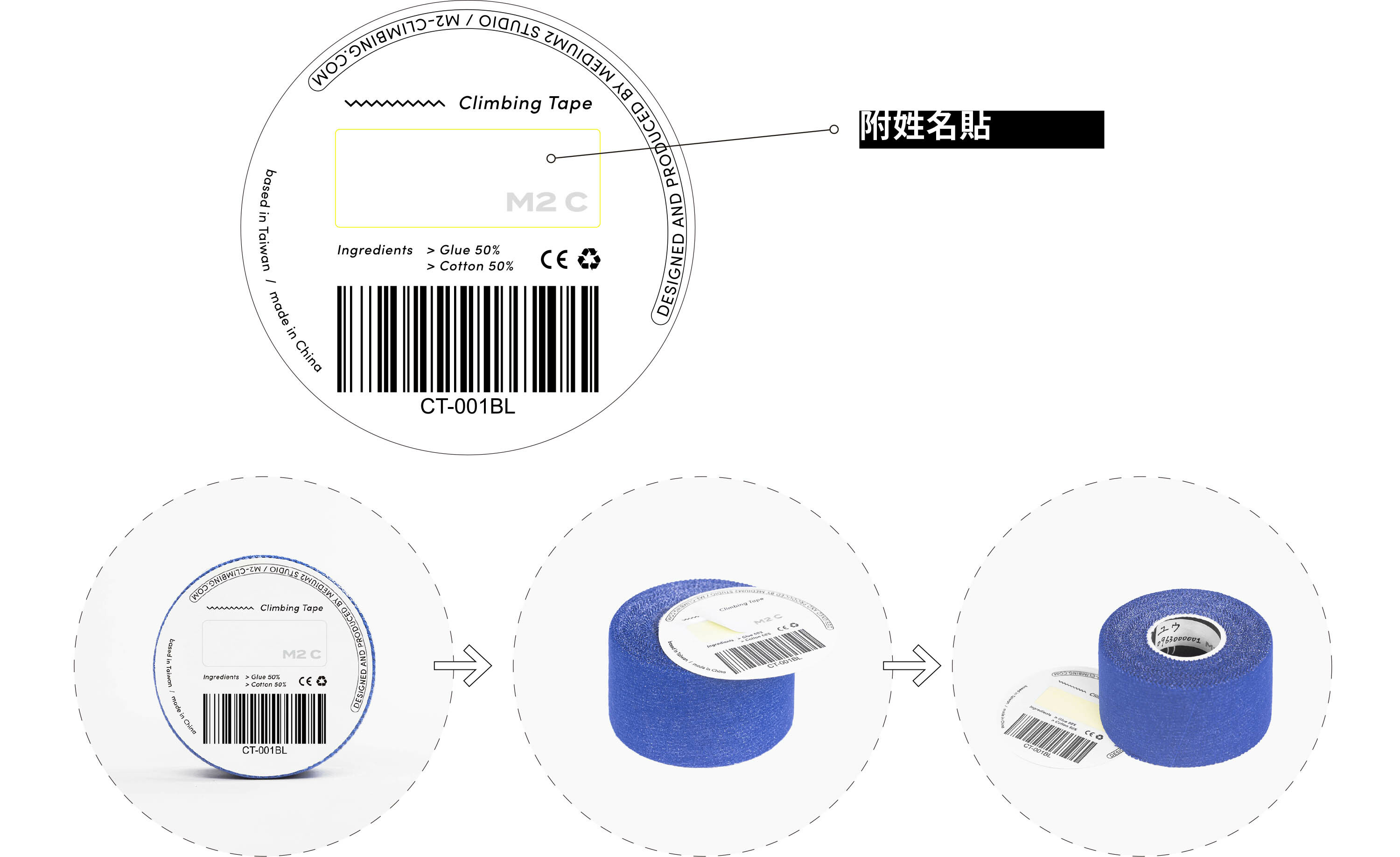 M2C Climbing Tape 現在提供白、經典藍、單寧藍、黑、火山紅等五種顏色,讓您自由選擇,搭配屬於自己的風格。