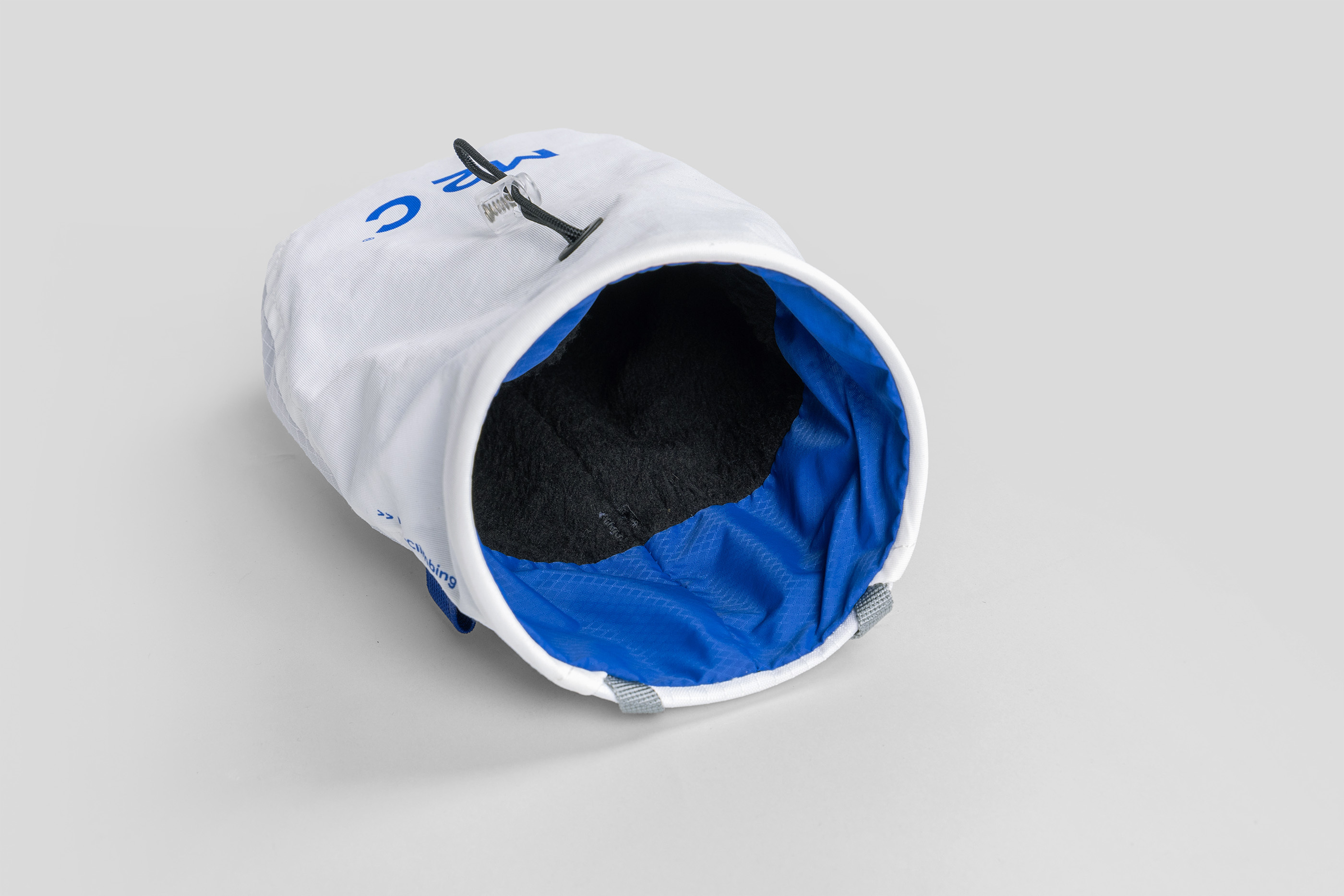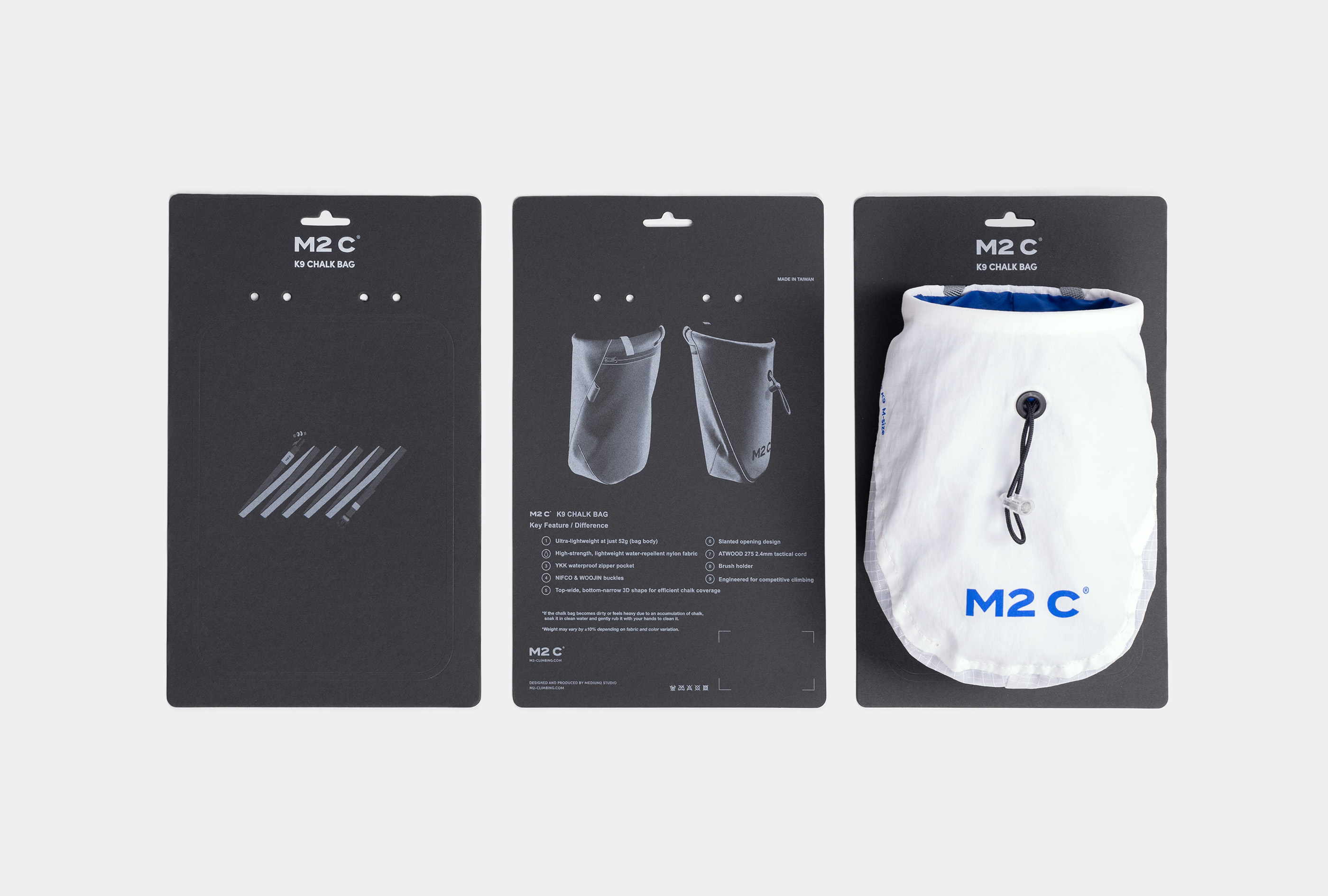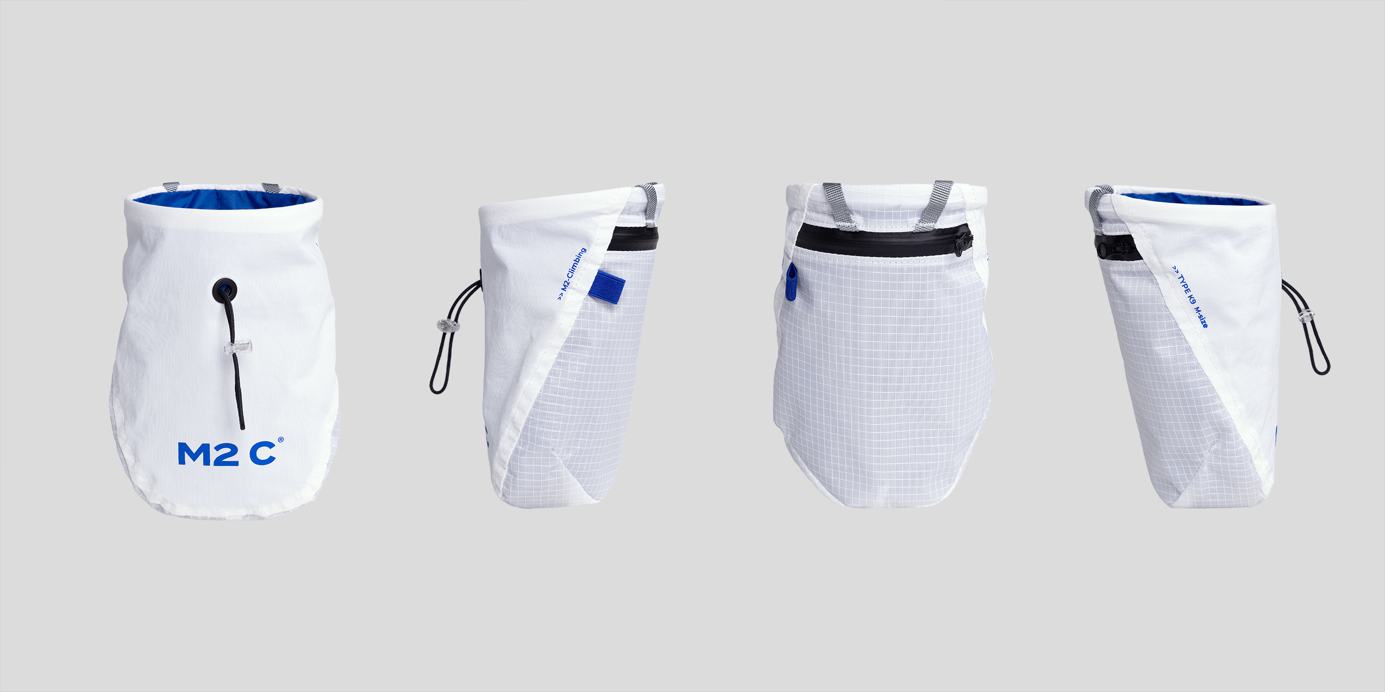 M2C K9 粉袋(白),是一個上寬下窄、傾斜袋口設計的競技取向3D版型攀岩用粉袋,