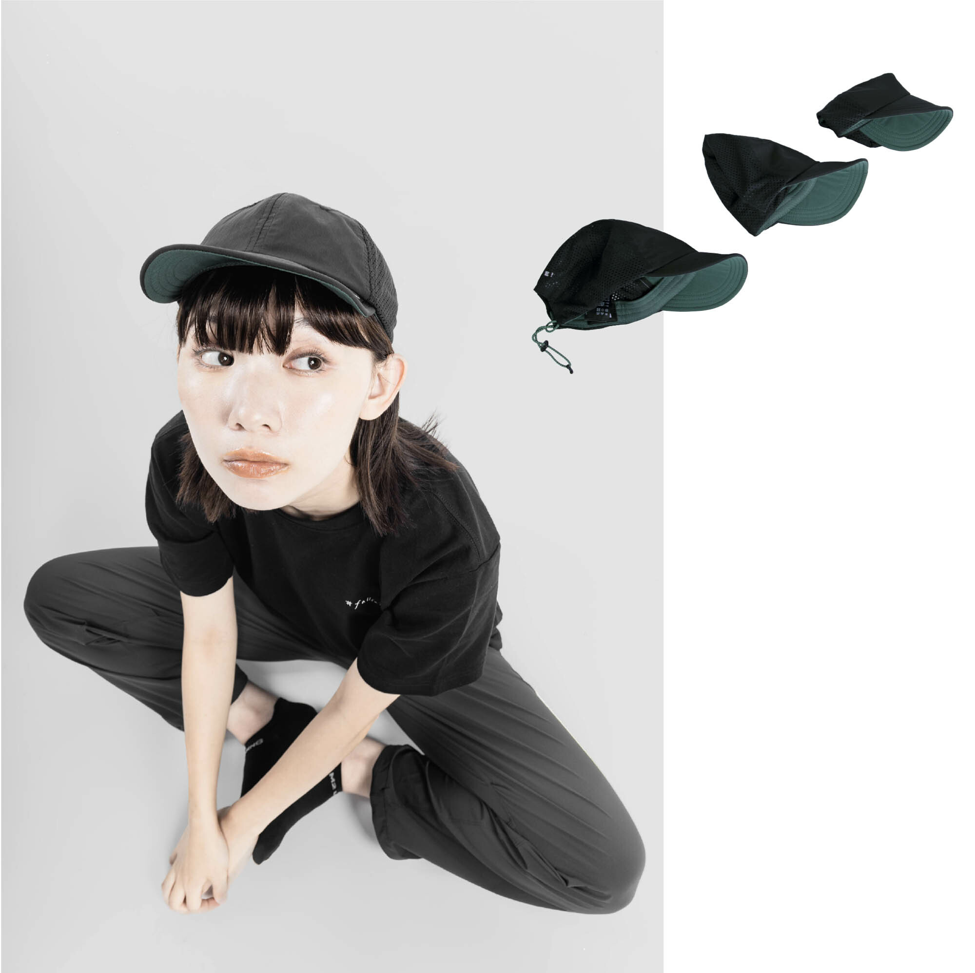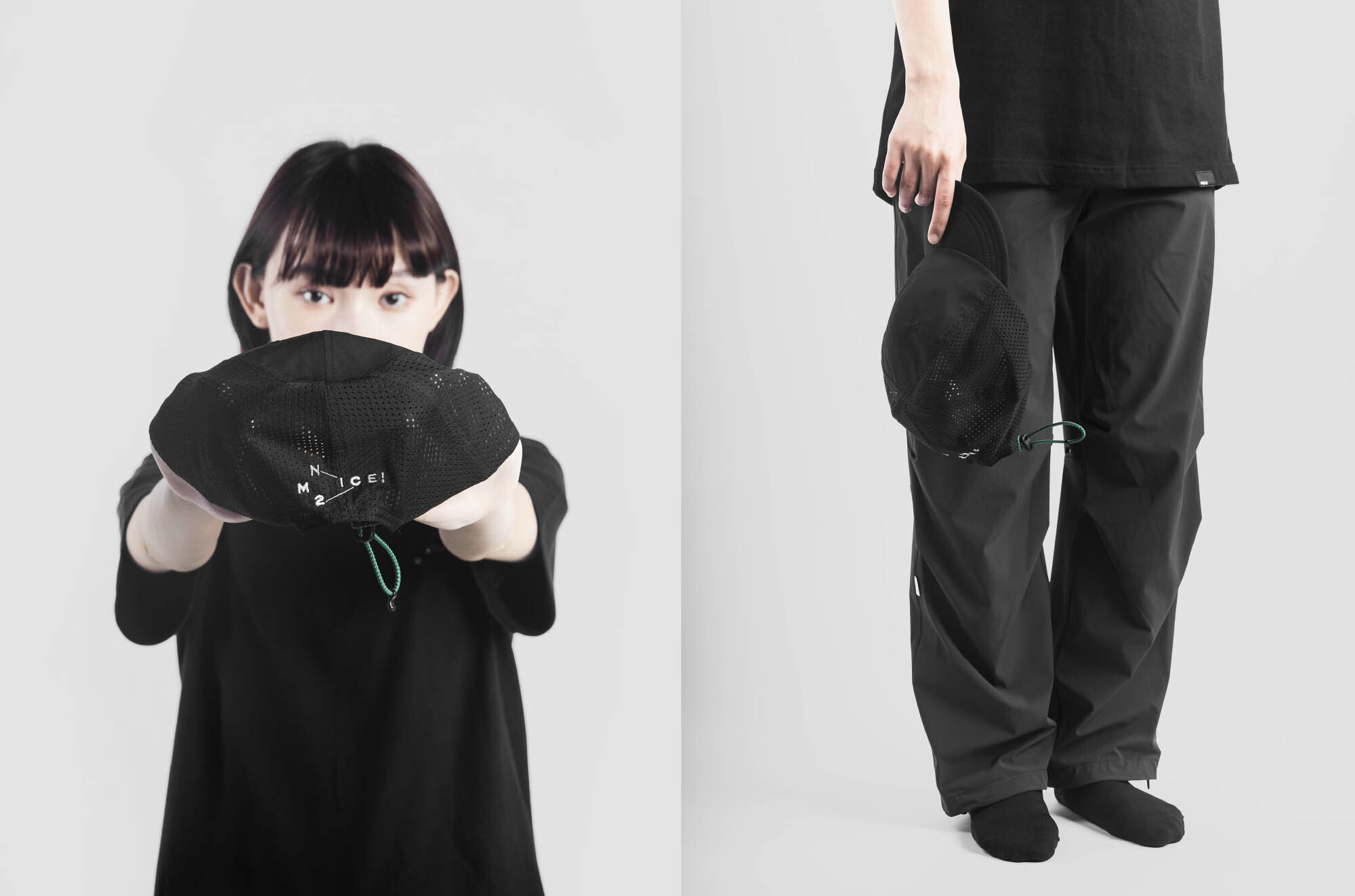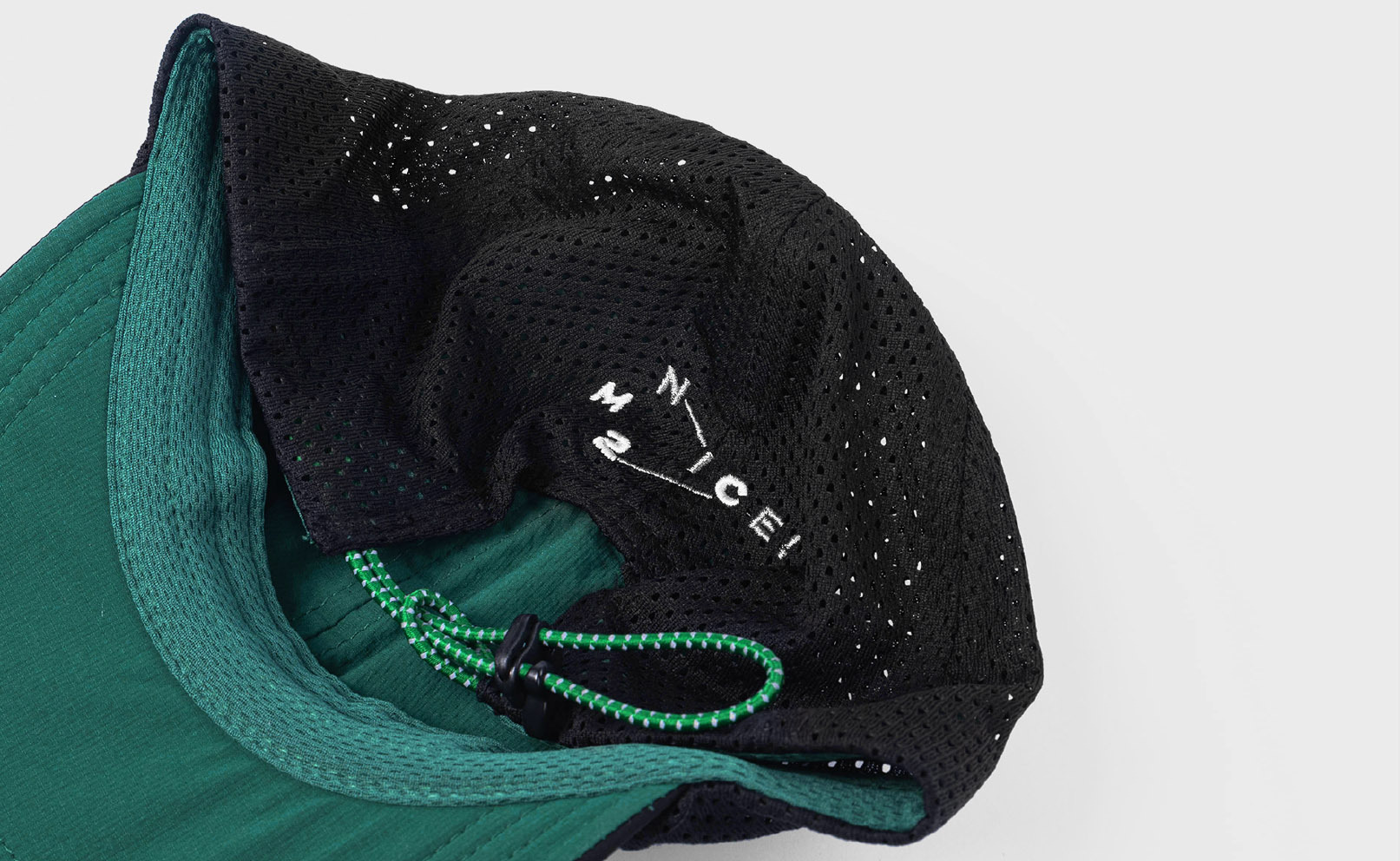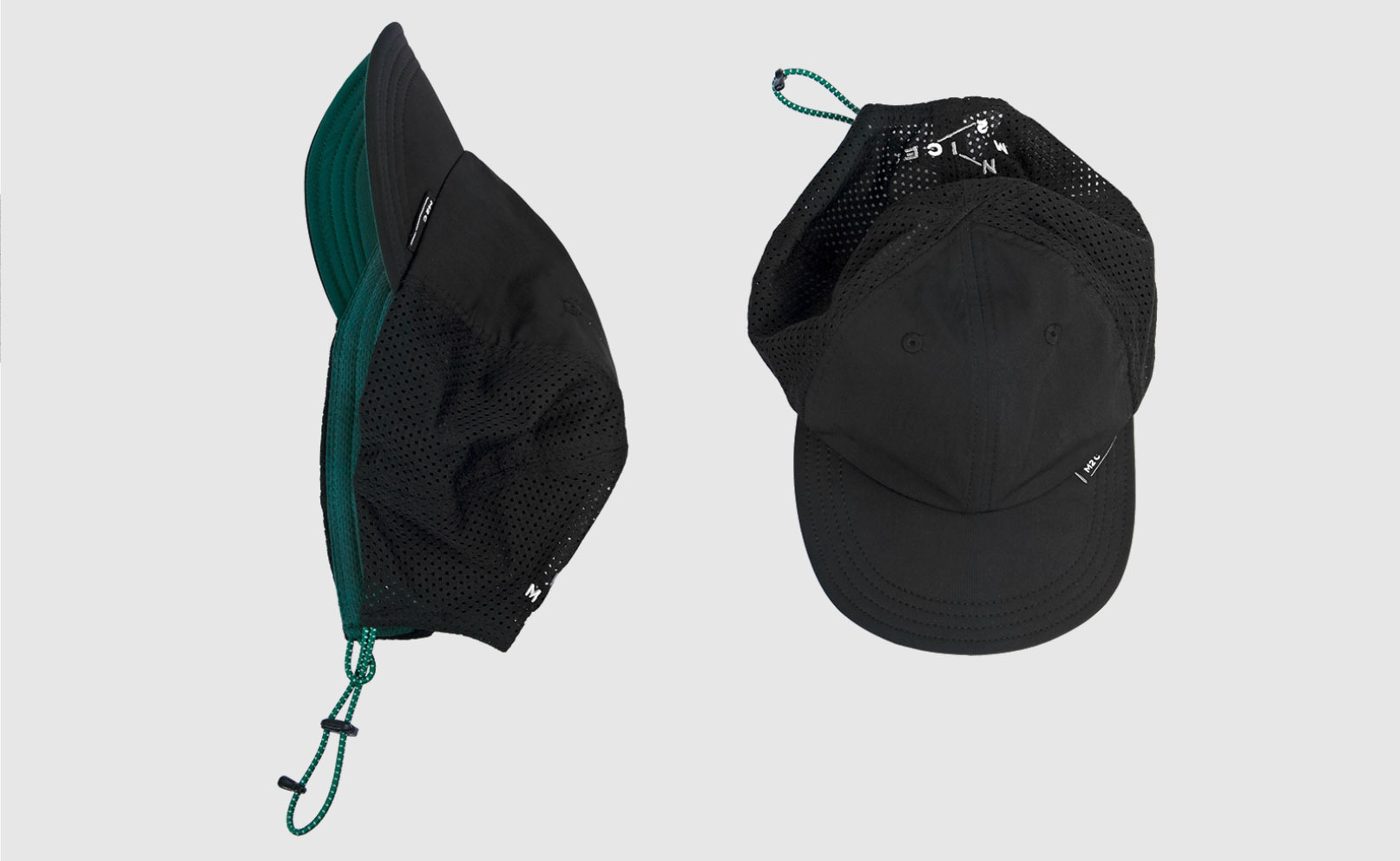 Nice! Cap 的帽身採用防潑水布料與網布拼接,遮陽避雨又能快速排汗,集高機能性與簡約的設計於一身。上山下海,或運動之餘的休閒日常皆能輕鬆戴上。