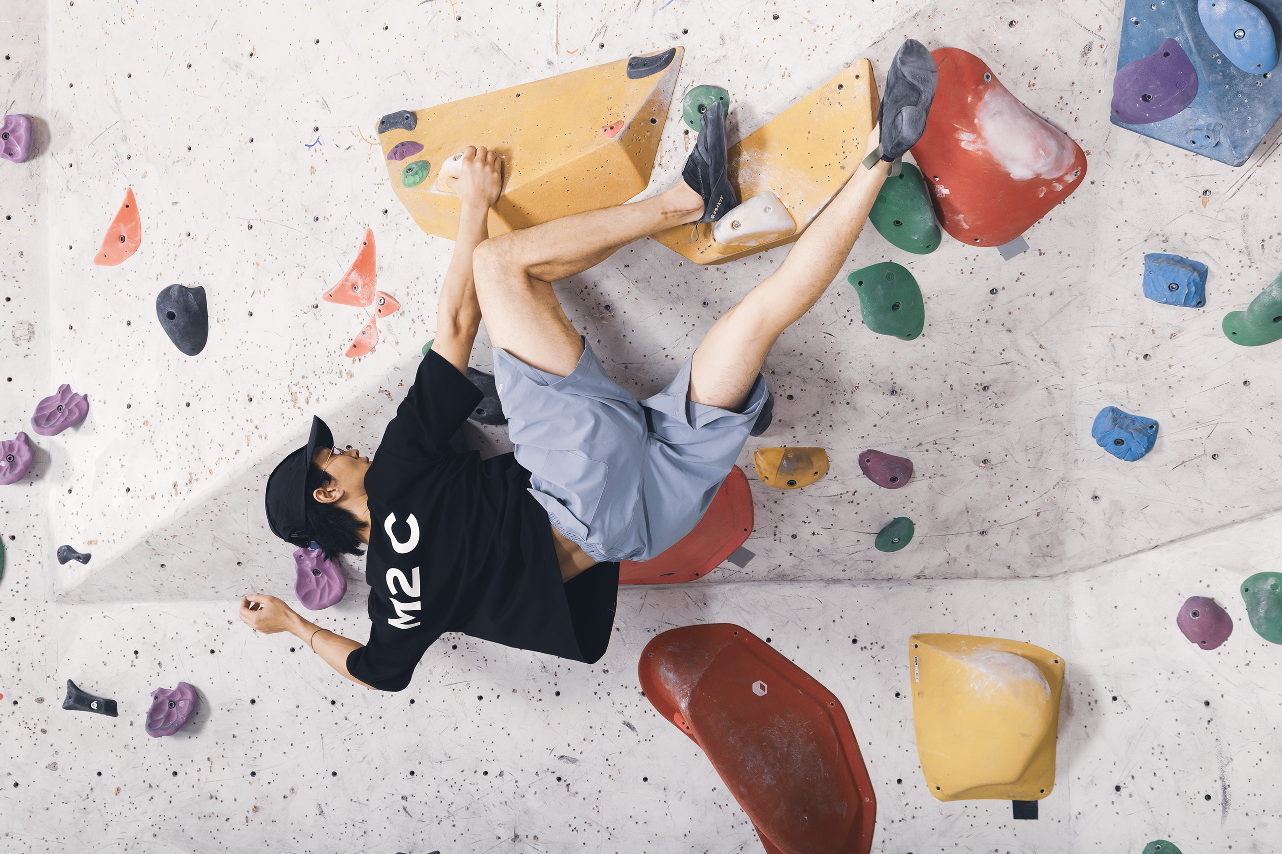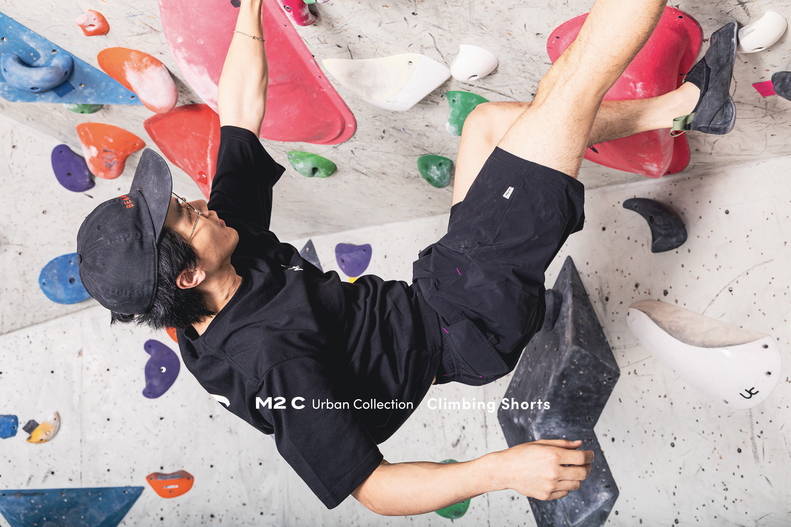 M2C Urban Collection 攀岩短褲的版型,於褲管寬度上極為講究,採用偏寬但不干擾活動的洗鍊版型。在簡約時尚的前提下取得了最大的機能性。