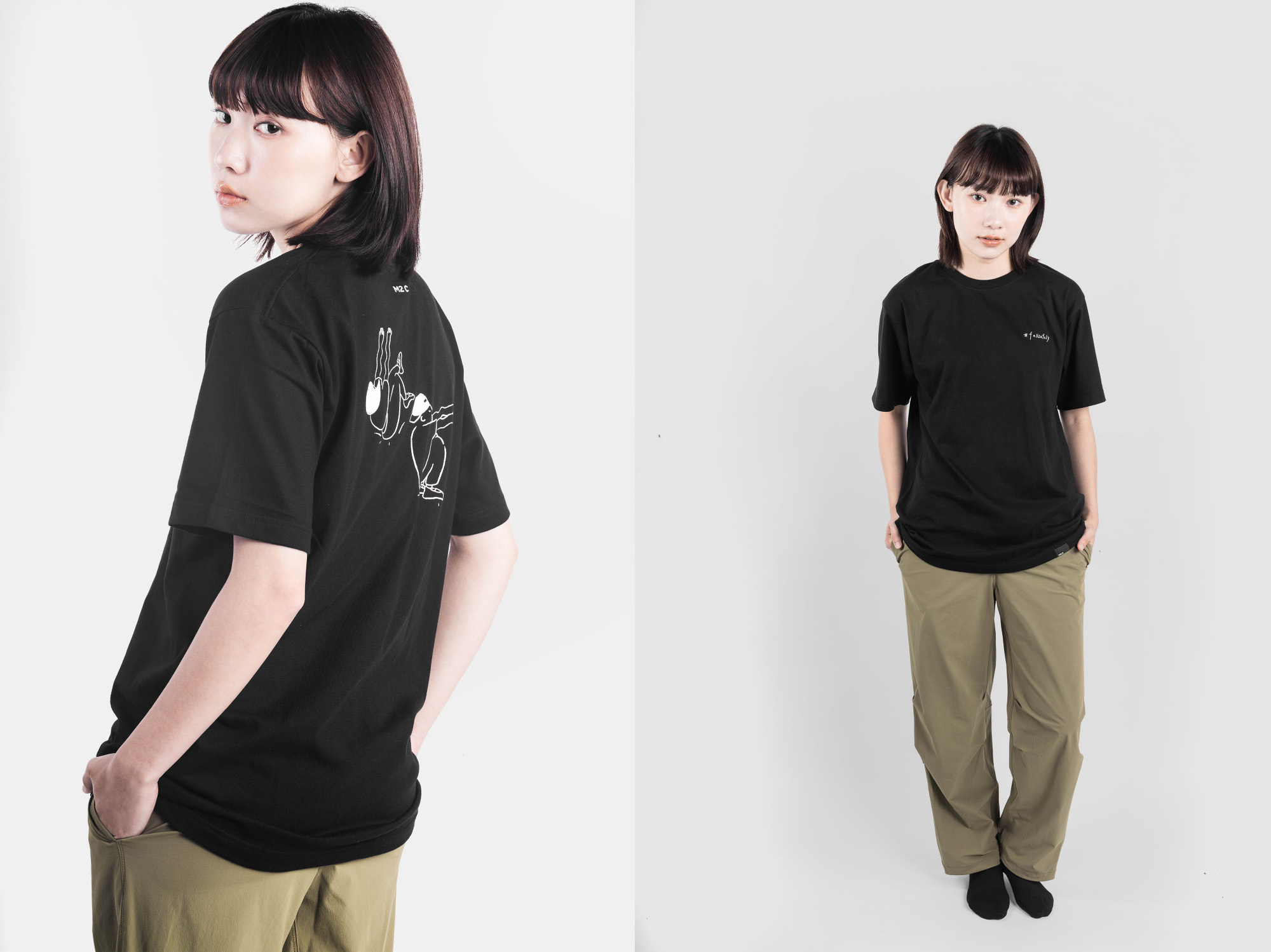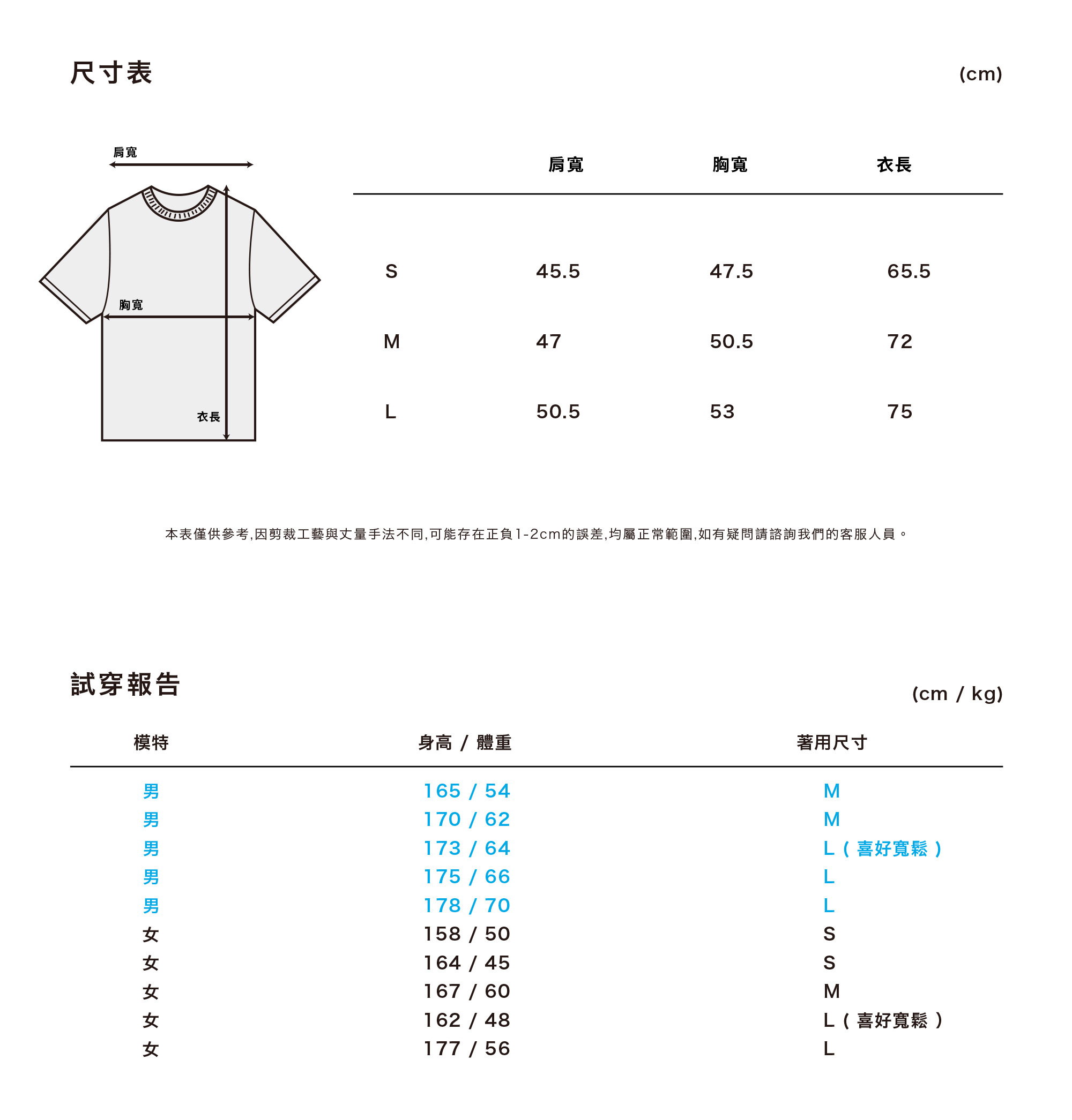 前後雙片剪裁,非滾筒Tee,肩膀縫線布料包邊。